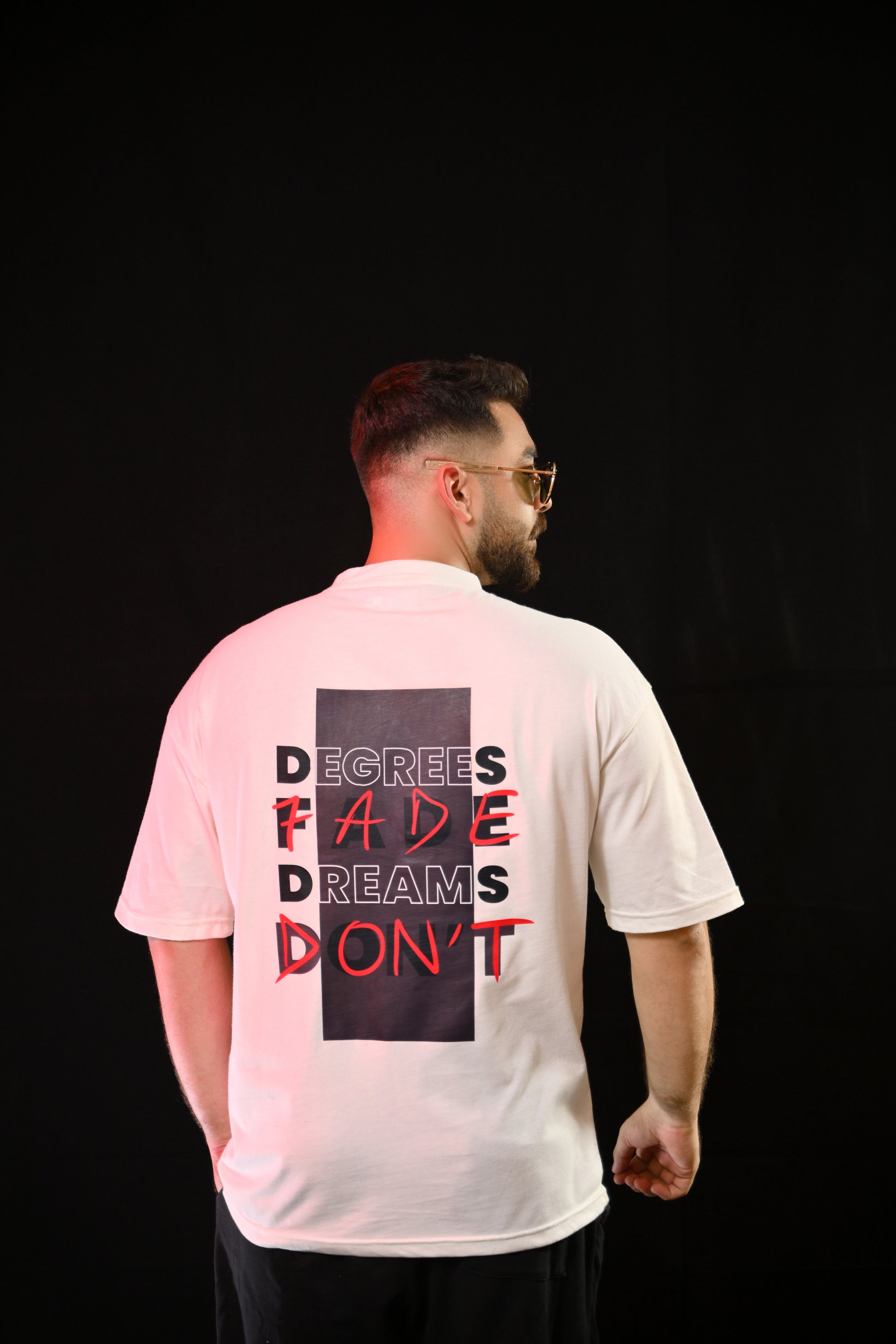 Stand out with our Cream Oversized Tee, crafted from premium Cotton Jersey for lasting softness and comfort. Featuring a relaxed oversized cut, this tee is designed to give you effortless style with maximum comfort. The back carries a powerful DTF print “DEGREES FADE, DREAMS DON’T”, making it more than just a shirt—it’s a message. Available in M, L, and XL, perfect for casual wear or layering.